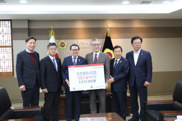 [인천=문찬식 기자] 인천시의회는 17일 강원도 산불 피해 이재민들의 마음을 위로하고 산불로 입은 피해 복구에 도움이 되고자 시의원을 포함한 의회 구성원 전원이 자발적으로 모금한 성금 251만원을 인천사회 복지공동모금회를 통해 전달했다.