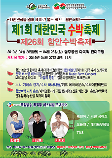전국최대 수박주산지인 함안에서 ‘제1회 대한민국 수박축제·제26회 함안수박축제’가 오는 26일부터 28일까지 함주공원 다목적 잔디구장 일원에서 ‘함안아라문화제’ 행사와 함께 열린다.