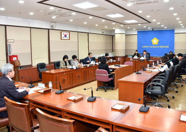 | ▲ 특위 위원들이 강남구청 주민자치과장으로부터 업무보고를 받고 있다. (사진제공=강남구의회) | ||