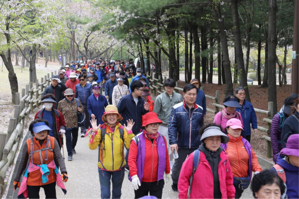 서울 강서구는 최근 방화근린공원에서 ‘꽃이 좋다, 강서가 좋다!’라는 슬로건과 함께 '개화산 봄꽃 축제'를 개최했다. 이날 행사는 건강걷기, 문화공연, 플라워콘서트 등으로 진행됐다. 사진은 주민들이 개화산 둘레길을 걷고 있는 모습. (사진제공=강서구청)