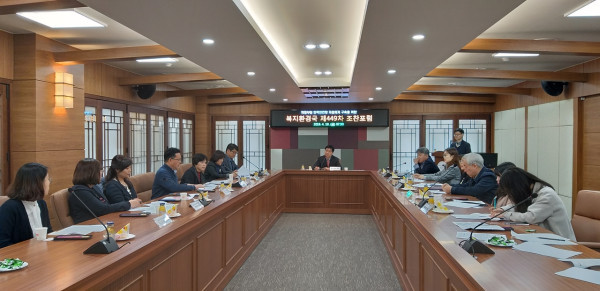 경기 의정부시는 지난 19일 시청 소회의실에서 동 지역사회보장협의체 위원장, 권역동 인적안전망 담당팀장 등 관계자들이 참석한 가운데 ‘의정부형 인적안전망 지원체계 구축을 위한 협업 방안’을 주제로 제449차 복지환경국 조찬포럼을 개최했다. 사진은 참여자들이 회의하는 모습. (사진제공=의정부시청)