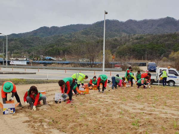 경기 포천시 일동면 새마을부녀회는 지난 19일 주민과 관광객들에게 쾌적한 환경을 제공하기 위해 꽃묘 식재 행사를 개최했다. 이날 행사에서는 47번국도 수입교차로 공원 일대에 5000여본의 꽃을 식재했다. 사진은 행사 참여자들이 꽃을 식재하는 모습. (사진제공=포천시청)