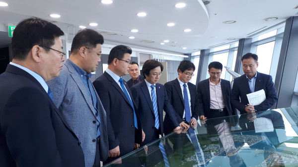 | ▲ 평택항만을 방문한 경기도의회 미세먼지대책 소위 위원들이 미니어처로 만들어진 평택항만 일대를 보며 관계자의 설명을 듣고 있다. (사진제공=경기도의회) | ||