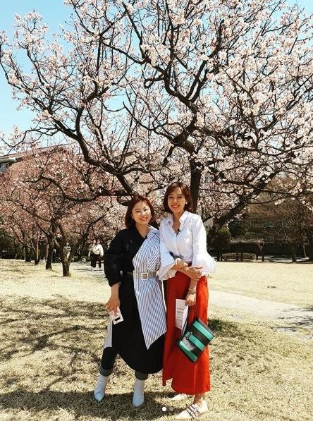 공개된 사진 속 심진화, 소유진은 벚꽃 나무 아래서 미소 짓고 있다. 심진화는 이와 함께 "올봄은 유난히 힘들었지만 또 유난히 감사하기도 하니 그래서 인생인가봉가. 내게 힘이 되는 쏘와 벚꽃"이라고 덧붙였다.