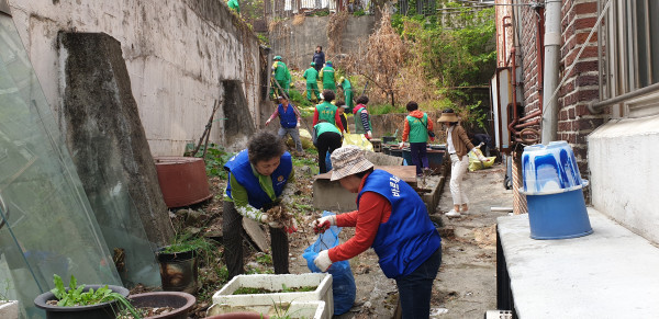 경기 수원시 팔달구 행궁동은 지난 24일 수년간 쌓인 각종 무단투기 쓰레기로 몸살을 앓고 있는 팔달산 자락에 위치한 주택가 주변을 대상으로 대대적인 정비 작업을 실시했다. 사진은 참여자들이 쓰레기를 수거하고 있는 모습. (사진제공=수원시청)