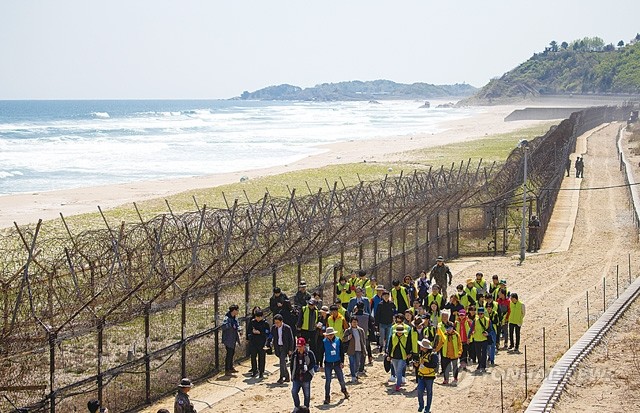 4.27 남북정상회담 1주년인 27일 시민들이 강원도 고성군 ‘DMZ 평화의 길’을 걷고 있다.