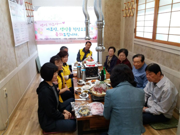 경기 이천시 부발읍 지역사회보장협의체는 최근 이달 생일을 맞은 지역내 저소득 홀몸노인 중 자녀가 없거나 가족관계가 단절된 4명을 초대해 생일잔치를 열었다. 협의체 위원들은 케이크 점화, 선물 전달 등을 했다. 사진은 생일잔치를 진행하는 모습. (사진제공=이천시청)