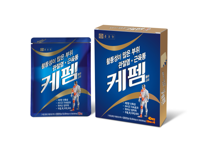 ‘케펨’은 비스테로이드성 소염진통 성분인 케토프로펜을 함유해 근육통, 관절염 치료에 효과적인 플라스타 제품이다. 약물의 피부 투과 속도가 빠르고 투과율이 높아 환부에 부착 시 빠르고 강력한 소염∙진통 효과를 나타낸다.