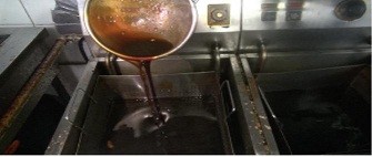 | ▲ 튀김용 기름을 자주 교체하지 않아 시커먼 폐유 상태로 조리에 사용 | ||