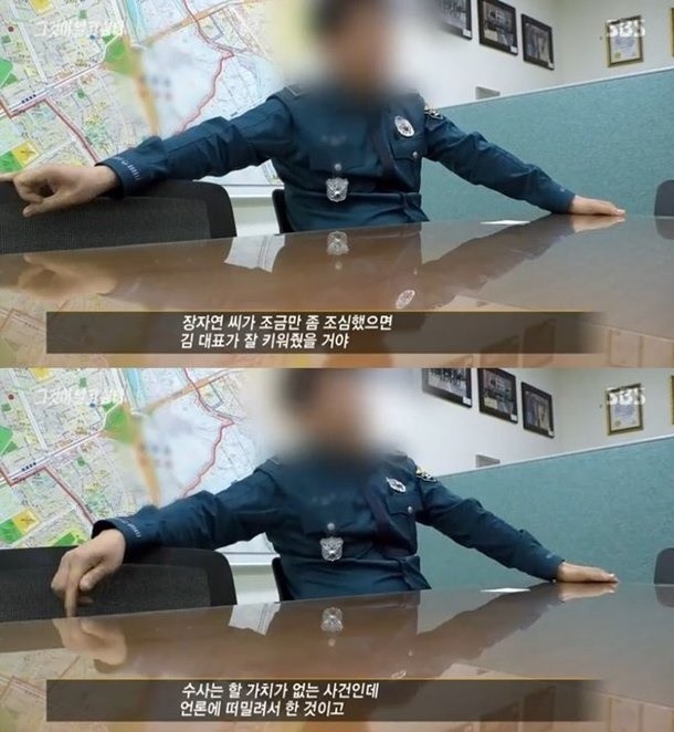 이에 "무슨 돈이 어디서 나느냐"고 묻자 경찰은 "유산이 많다"면서 "장자연 씨가 조금만 조심했으면 김 대표가 잘 키워줬을 거다"고 말했다.