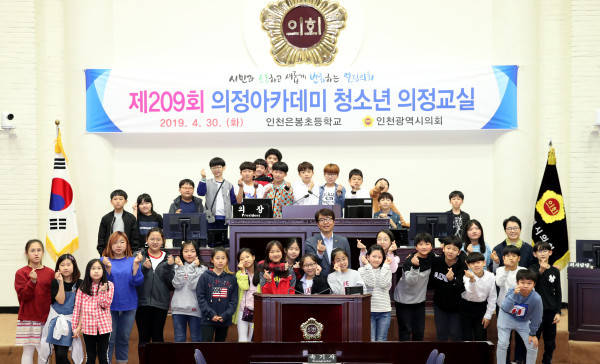 [인천=문찬식 기자] 인천시의회가 최근 개최한 '제209회 의정아카데미 청소년 의정교실'에 인천은봉초등학교(남동구 논현동) 전교학생 자치회 35명이 참가했다.