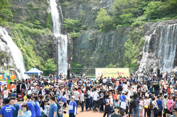 | ▲ 지난해 용마폭포공원을 찾은 시민들이 '중랑구 어린이 축제'를 즐기고 있다. (사진제공=중랑구청) | ||