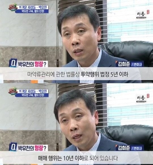 이날 방송에 등장한 김희준 변호사는 “다리털에서 마약 약성 반응이 나왔고 황하나 씨의 진술을 뒷받침할 수 있는 명백한 증거가 나왔기 때문에 계속 부인하는 것은 어려웠을 것이라 본다”며 “마약 투약은 5년 이하, 매매행위는 10년이하다. 선고 형량은 15년 이내로 예상된다. 계속해서 혐의를 부인해왔기 때문에 초범이라고 하더라도 더 중하게 처벌될 것으로 보인다”고 추측했다.