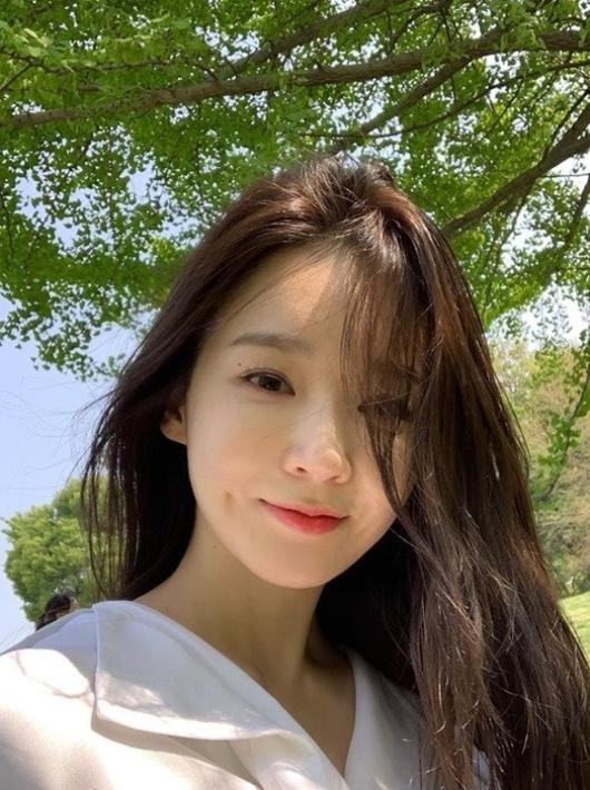 공개된 사진 속 강민경은 푸른 나무를 배경으로 셀카를 남기고 있다. 봄처럼 따뜻한 미소와 밝은 비주얼을 자랑한다. 폭 파인 보조개가 돋보인다.