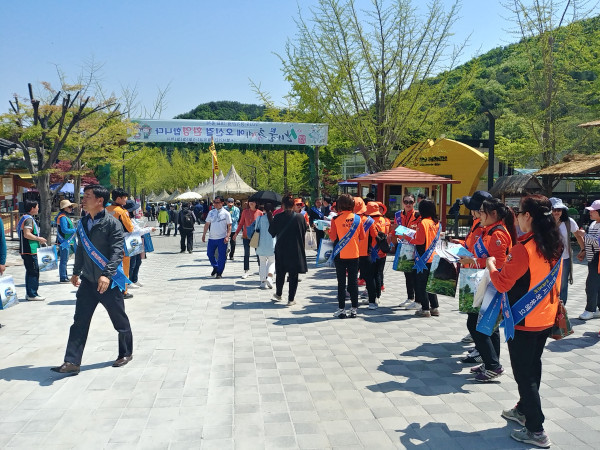 경기 양평군은 최근 용문산 나물축제장에서 '제278차 안전점검의 날' 캠페인을 실시했다. 이날 행사는 정동균 군수를 비롯해 100여명이 참여해 4대 불법 주·정차 주민신고제 등을 홍보했다. 사진은 캠페인 홍보를 하는 참여자들의 모습. (사진제공=양평군청)