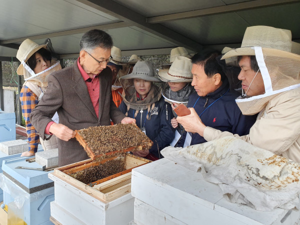 관악구가 벌의 생태, 밀원식물, 사계절 관리 등 양봉에 대해 전반적으로 배울 수 있는 ‘2019년 관악 도시양봉교실’을 운영하고 있다. 사진은 최근 도시양봉교실에 참여한 수강생들이 낙성대양봉장에서 벌통 내검 실습을 하는 모습. (사진제공=관악구청)