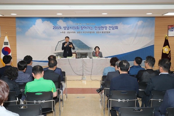 ‘찾아가는 민생현장 간담회’는 성남시의회가 시민의 대의기관으로서 기능을 다하고자 개원 이래 최초로 개최하는 행사로 지난 3일부터 수정‧중원‧분당 3개 구의 주민자치협의회와 통장연합회를 만나 시민들이 겪는 불편사항이나 민원 등을 직접 청취하고 소통하는 시간을 가지고 있다.