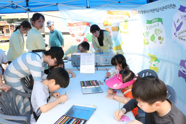 경기 의정부시 어린이급식관리지원센터는 최근 ‘제9회 의정부시 가족문화대축제’에 참여해 시민들과 함께하는 프로그램을 진행했다. 사진은 어린이들이 '슈링클스'를 만들고 있는 모습. (사진제공=의정부시청)