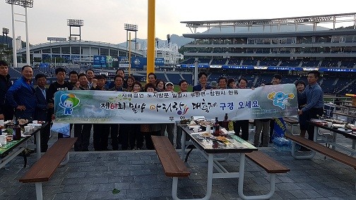 | ▲ 자매결연 도시 방문 기념촬영(창원NC파크) | ||