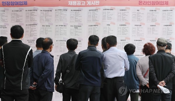 13일 오후 서울광장에서 서울시 주최로 열린 2019 취업취약계층 일자리 박람회에서 구직자들이 채용공고 게시판을 살펴보고 있다.