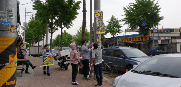 경기 수원시 팔달구 행궁동은 오는 17일까지 불법으로 대로변, 골목길 등 도심 곳곳에 게시된 현수막에 대한 대대적인 정비작업을 실시한다. 사진은 지난 13일 관계자들이 현수막을 제거하고 있는 모습. (사진제공=수원시청)