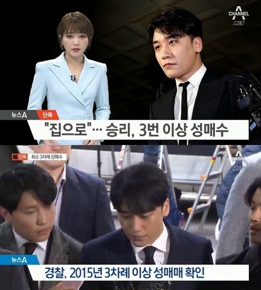 13일 방송된 종합편성채널 채널A의 '뉴스A'는 최근 성매매 알선 혐의뿐만 아니라 성매매 혐의까지 추가된 그룹 빅뱅 출신 승리와 관련해 단독 보도했다.