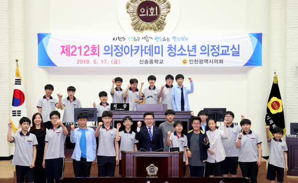 [인천=문찬식 기자] 인천시의회가 최근 개최한 '제212회 의정아카데미 청소년 의정교실'에 신송중학교(연수구 송도동) 사회탐구동아리 21명이 참가했다.