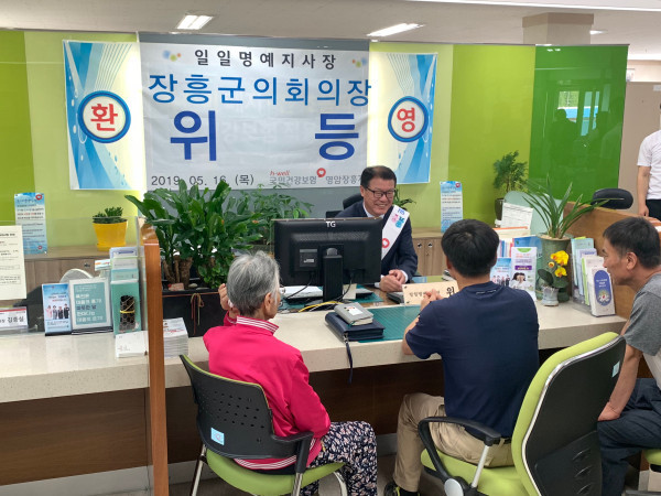 이날 일일명예지사장으로 위촉된 위 의장은 민원인 안내 등의 주요 업무를 직접 체험했다.