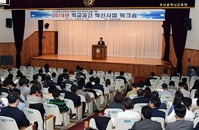 부산광역시교육청(교육감 김석준)은 지난20일 시교육청 대강당에서 제태원 행정국장, 학교공간혁신 촉진자와 T/F팀원, 교육지원청 담당자, 학교 교장과 담당교사, 행정실장 등이 참석한 가운데 ‘미래형 학교공간 혁신사업’ 워크숍을 열었다.
