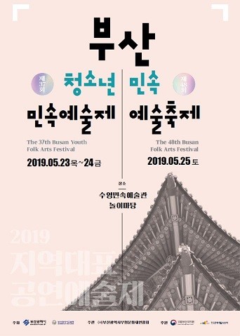 부산시(시장 오거돈)는 무형문화재 및 비지정 전통민속 경연을 통해 시민들에게 우리 문화의 우수성을 널리 알리는 동시에 전통문화의 계승 발전을 도모하기 위한 ‘제37회 부산청소년민속예술제’와 ‘제48회 부산민속예술축제’를 5월 23일부터 5월 25일까지 수영민속예술관 놀이마당에서 개최한다고 밝혔다.