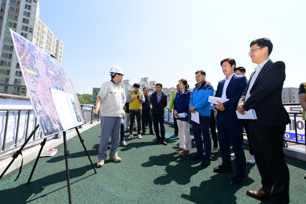 장기지하차도 소음저감시설 공사현장을 먼저 찾은 점검반(김종혁·최명진·오강현·박우식 의원) 일행은 시공사 관계자로부터 공사 추진현황을 청취한 후 ▲동절기 적설시 소음저감시설 상부의 제설방안 마련 ▲지하차도 상부 폐쇄에 따른 원활한 환기시설의 설치를 LH에 요구했다.