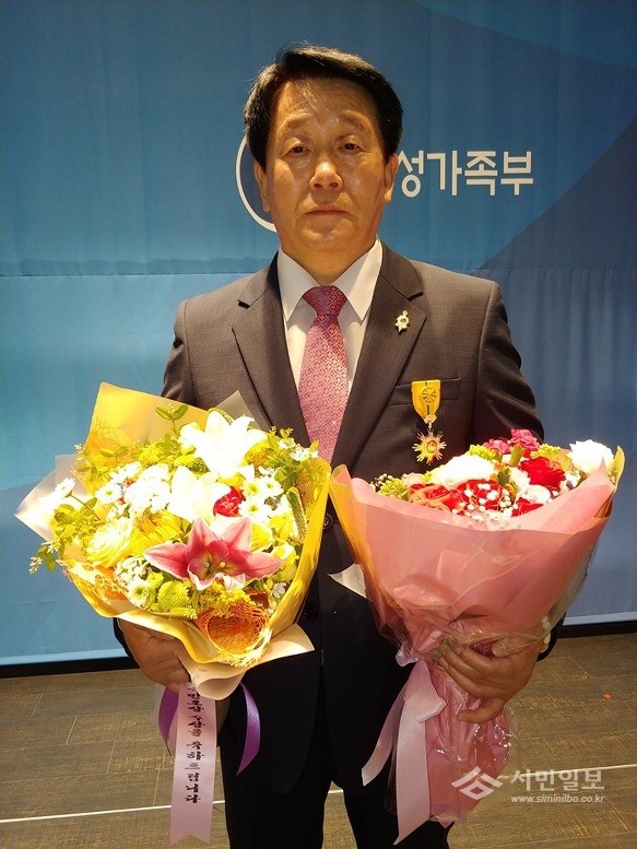 [창원=안기한 기자]마산지역에서 무려 39년동안 봉사의 길을 달려온 ‘마산살리기범시민연합 김호근 사무총장이 23일 오후 1시부터 열린 수원컨벤션 이벤트홀에서 열린 ’2019년 청소년의 달 기념식‘에서 청소년 육성 및 보호 유공자 부문 국민포장을 수상했다.