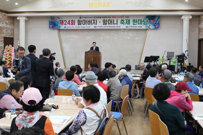 [창원=안기한 기자]‘제24회 할아버지,할머니 축제한마당’ 행사가 내서종합사회복지관에서 주최하고 청아의료재단과 지역단체의 후원으로 23일 오전 10시부터 ㈜무학 창원2공장 대강당에서 성황리 개최됐다.