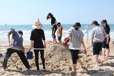 이날 학생들은 팀을 이뤄 다양한 캐릭터와 동물, 사람 얼굴 등의 대형 모래 조형물을 제작한다.