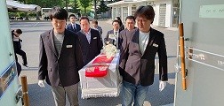 | ▲ 공단 직원들에 의한 무연고자의 관을 들어주는 모습 | ||