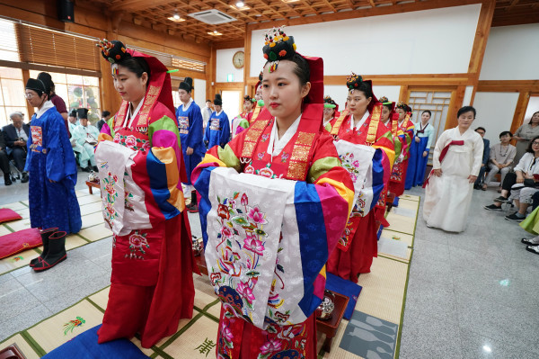 동대문구는 최근 서울한방진흥센터에서 성균관유도회 동대문지부 주최로 ‘제10회 전통 성년례 행사’를 개최했다. 이날 지역내 2000년생 총 18명을 대상으로 성년례, 성년선서 등이 진행됐다. 사진은 성년례가 진행되고 있는 모습. (사진제공=동대문구청)