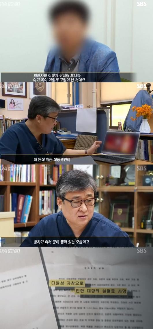 유성호 서울대 법의학과 교수는 "목의 기관을 절단하는 것은 마음먹고 해야 된다. 프로페셔널하다. 킬러로서 잔인하고 계획적이고 뭔가 구조를 정확히 아는 사람"이라 설명했다.