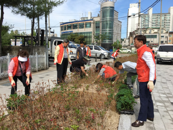 경기 의정부시 송산2동 주민자치위원회는 최근 송산2동 직원들과 함께 지역내 유치원 옆 화단을 청소하고 사루비아 700주 등을 식재해 아름다운 꽃길을 조성했다. 사진은 위원들이 유치원 근처 화단에 사루비아를 식재하고 있는 모습. (사진제공=의정부시청)