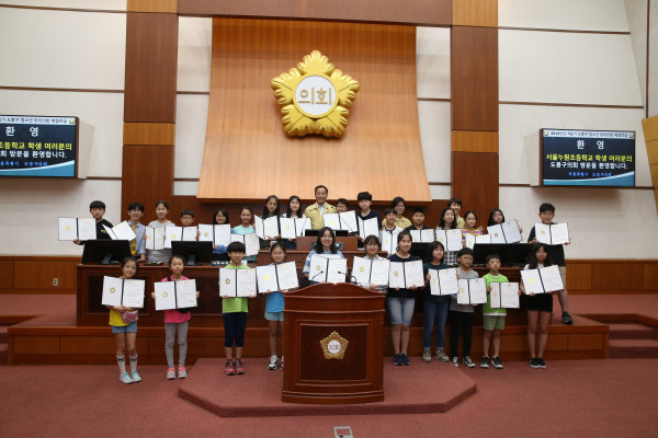 이 의장은 환영사에서 “모의의회 체험학습 프로그램이 우리 사회의 주인공인 어린이들이 직접 의회 의사진행을 체험함으로써 민주시민으로서의 자질을 함양해 이 나라를 이끌어 갈 든든한 기둥으로 자라날 수 있는 좋은 기회의 장이 되길 바란다”고 격려했다.