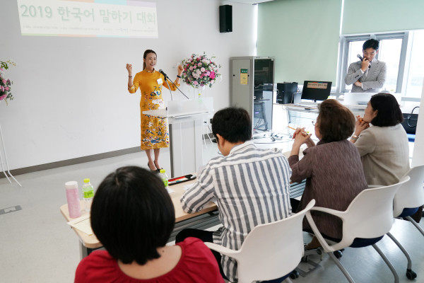 서울 동대문구는 최근 지역내 거주하는 결혼 이민자 및 외국인들의 한국어 소통 능력을 향상시키고 한국에 대한 이해를 높이고자 동대문구건강가정·다문화가족지원센터에서 ‘2019년 한국어 말하기 대회’를 개최했다. 사진은 발표를 하는 모습. (사진제공=동대문구청)