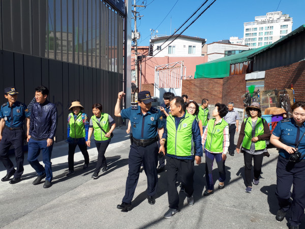 성북구 길음2동은 최근 신길음 도시환경정비구역에 대한 민·관·경 합동 안전 순찰을 실시했다. 이날 합동 순찰은 자율방재단, 종암경찰서 월곡지구대, 동주민센터, 주민 등이 참여해 진행됐다. 사진은 합동 순찰을 하는 관계자들의 모습. (사진제공=성북구청)