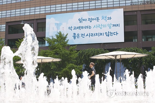 3일 서울 교보생명빌딩 외벽에 설치된 광화문 글판이 여름편으로 새롭게 단장했다. 여름편에는 김남조 시인의 시 ‘좋은 것’의 글귀가 실렸다.