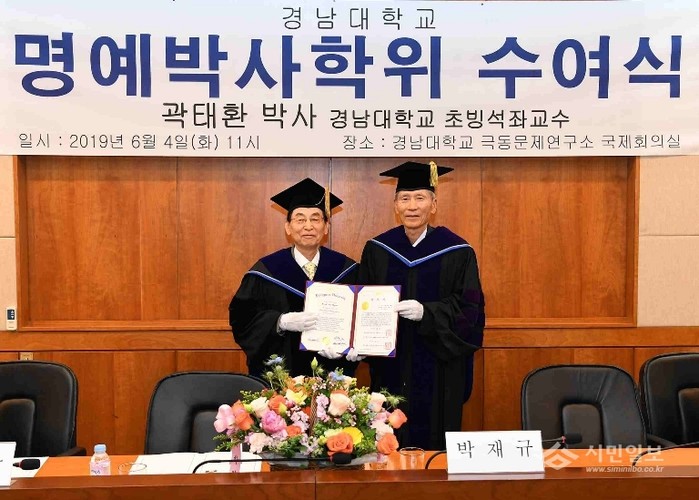 | ▲ 경남대, 곽태환 전 통일연구원장에게 명예박사학위 수여 | ||