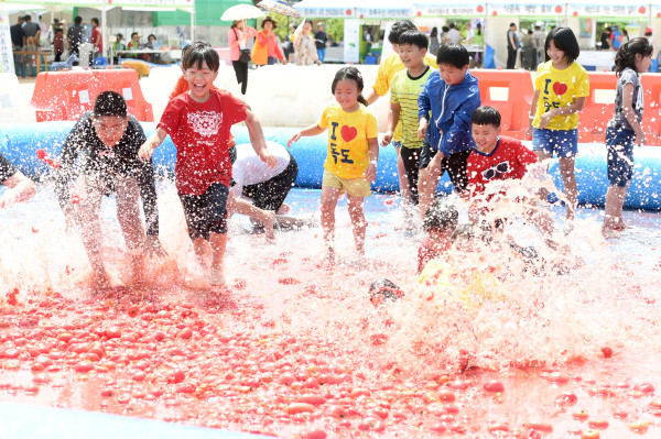 | ▲ 토마토풀장에서 즐겁게 놀고 있는 아이들. (사진제공=광주시청) | ||