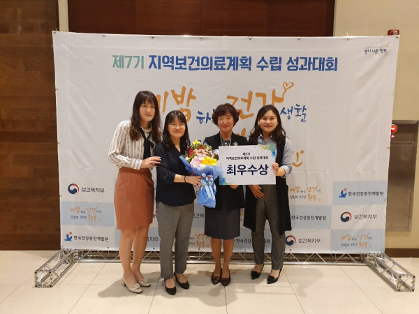 서울 광진구는 4일 서울 그랜드컨벤션 센터에서 열린 ‘제7기 지역보건의료계획 수립 평가 성과대회’에서 최우수 기관으로 선정됐다. 보건복지부가 주최한 이번 평가는 지역보건법에 따라 4개년 동안 중장기 계획을 세우는 ‘제7기 지역보건의료계획’을 전국 기초자치단체 보건소를 대상으로 평가한 것이다. 사진은 관계자들이 기념촬영을 하는 모습. (사진제공=광진구청)