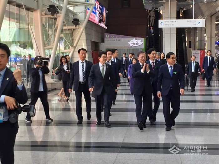 이날 오후 1시30분 부터 진행된 기념식 행사는 문 대통령이 컨벤션센터를 떠난 후 마무리 됐다.갑작스러운 문 대통령 창원 방문은 컨벤션센터 주위를 철통 보안으로 경계하면서 경찰 병력들로 가득 메웠다.