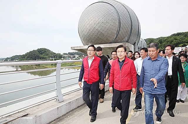 자유한국당 황교안 대표가 8일 경기도 여주 이포보를 방문, 시설물을 둘러보고 있다.