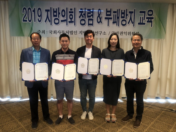 연수 마지막날에는 국민권익위원회 전임교수인 박정구씨로부터 ‘청렴&부패 방지’ 교육을 들으며, 주민의 대표로서 청렴의식을 고취해 부정청탁 근절을 통한 바람직한 의정활동을 수행하고자 올바른 청렴 가치관 함양에 힘썼다.