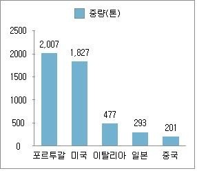 부산의 최대 수출국은 포르투갈로 흔히 ‘게맛살’이라고 불리는 찐 어묵이 주로 수출되고 있으며, 수출물량은 2017년 1,834톤에서 2018년 2,007톤으로 9.4% 증가했다. 유럽에서는 우리나라에서 주로 소비되는 튀긴 어묵보다는 샐러드나 스낵용 게맛살의 수요가 높다는 점을 공략한 결과로 보인다.