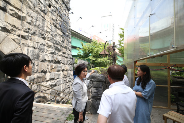 | ▲ 행정기획위원회 위원들이 미아리고개 예술극장 외부 시설을 둘러보고 있다. (사진제공=성북구의회) | ||